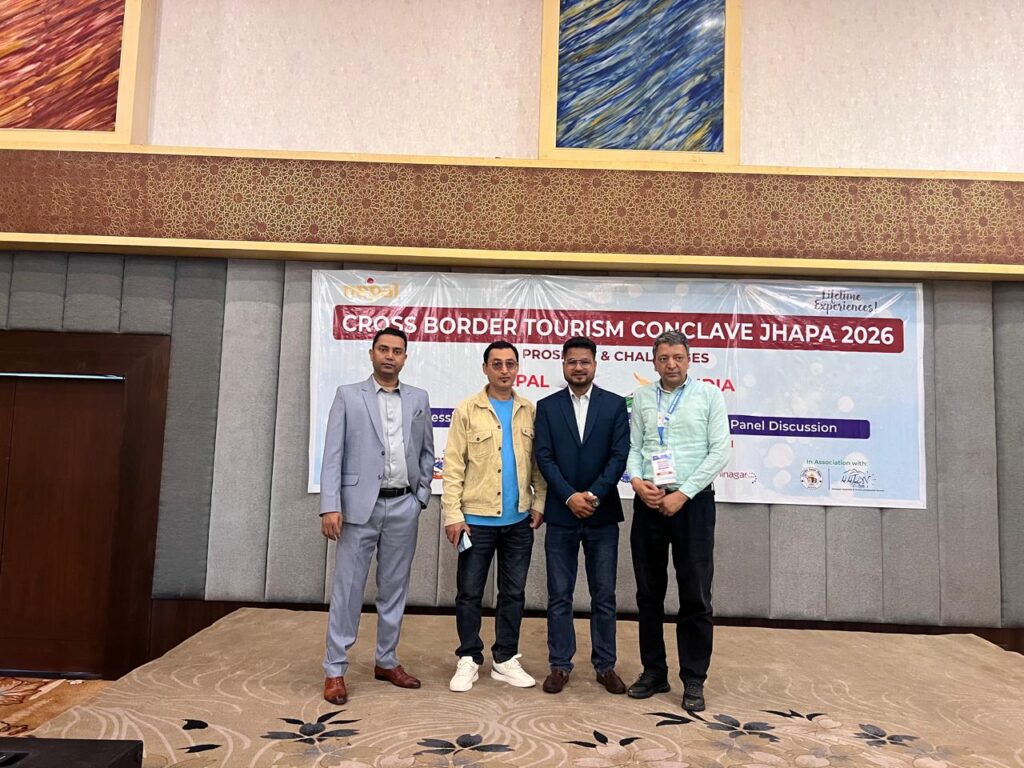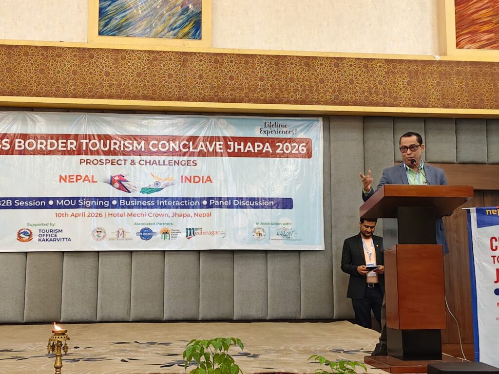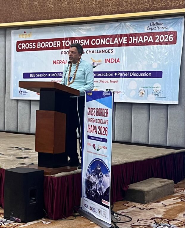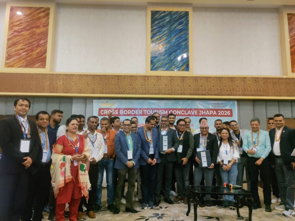 Jhapa: The third edition of the Cross-Border Tourism Conclave Jhapa-2026, jointly organized by the Nepal Tourism Board and the Tourism Office Kakarbhitta, concluded with a strong emphasis on promoting cross-border tourism, advancing policy reforms, and strengthening Nepal–India collaboration. Held on Friday at Hotel Mechi Crown in Jhapa, the conclave brought together policymakers, tourism stakeholders, and industry experts to discuss practical strategies for expanding tourism through improved infrastructure, service quality, and joint market promotion.