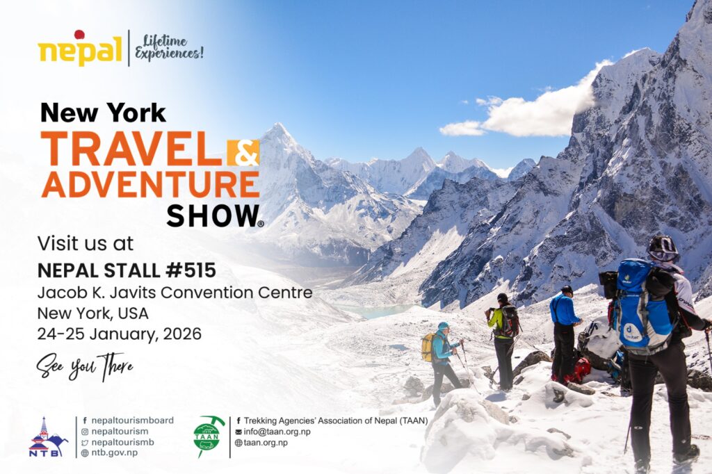 Nepal Tourism Board, in joint coordination with the Trekking Agencies’ Association of Nepal (TAAN), is proudly participating in the Travel & Adventure Show New York, taking place on 24–25 January 2026 at the Jacob K. Javits Convention Center, New York.